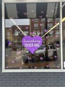 In a touching tribute, Camora Clothing Co. in Maddock invited residents to participate in a community initiative called “Fill Our Windows with Purple Hearts for Tucker Faul.”