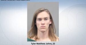 The suspect, Tyler Matthew Johns, was booked for open murder and discharging a firearm into an occupied vehicle, police said, calling the shooting a “senseless act.”